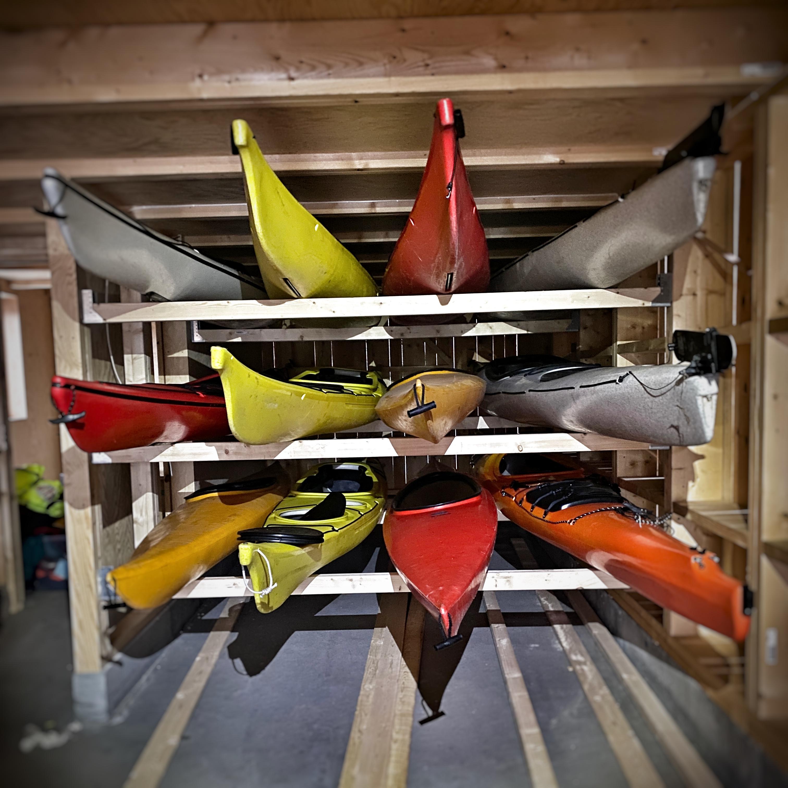 Noen av kajakkene våre lagret på naustet.